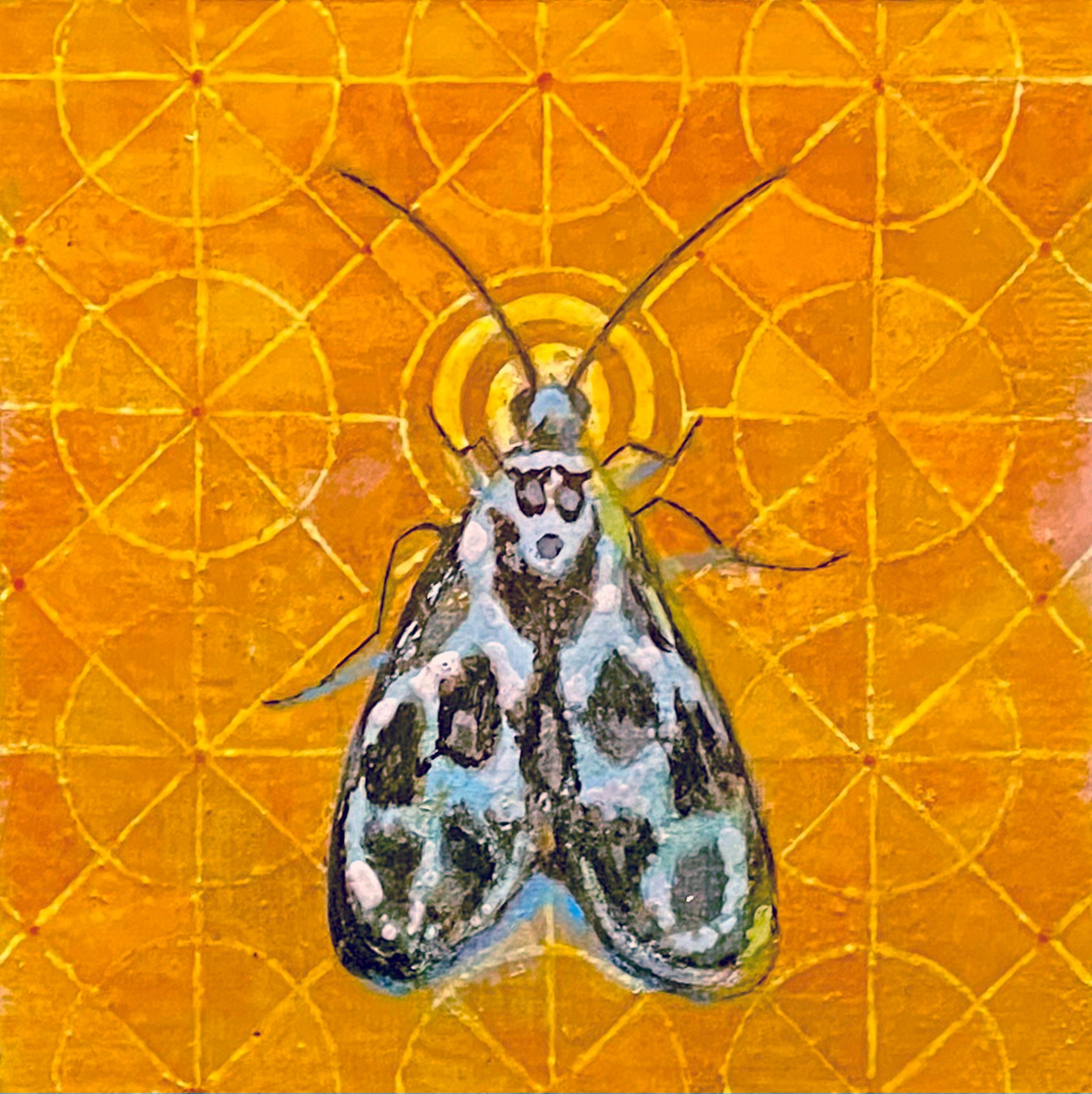 Moth 3, 4 x 4 in, Oil, Pastel, Enamel, Ink on Panel